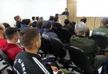 Sala de aula do Instituto de Desenvolvimento Econômico e Social de Fronteiras (IDESF) lotada com 42 agentes das forças de segurança da tríplice fronteira....